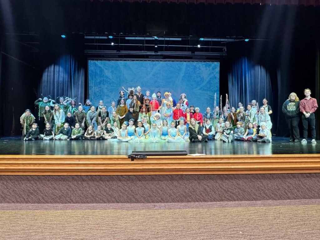 Throughout the process, students have been great. Ironically, there are 67 students in the production ranging from 1st grade all the way through 8th grade. My 8th graders have been with me since the beginning when I directed Newsies 3 years ago. They are so talented, and I’ve seen them take on these leadership roles within the show, at their school, and in their community. The younger kids really look up to them and learn from them. There are so many people to thank including KEDC! We were able to incorporate folk dances that I learned from the KEDC Elevation Summit conference this past summer. From the beginning, many students were involved with this production. Mrs. Butler’s Public Relations class made our audition posters using their Canva skills. Kayla Stafford’s high school drama classes and student volunteers made our set, lights, props, and ran tech for every performance. It takes a lot of people to get the princesses ready not to mention most kids have 2 costume changes or more during the show.
