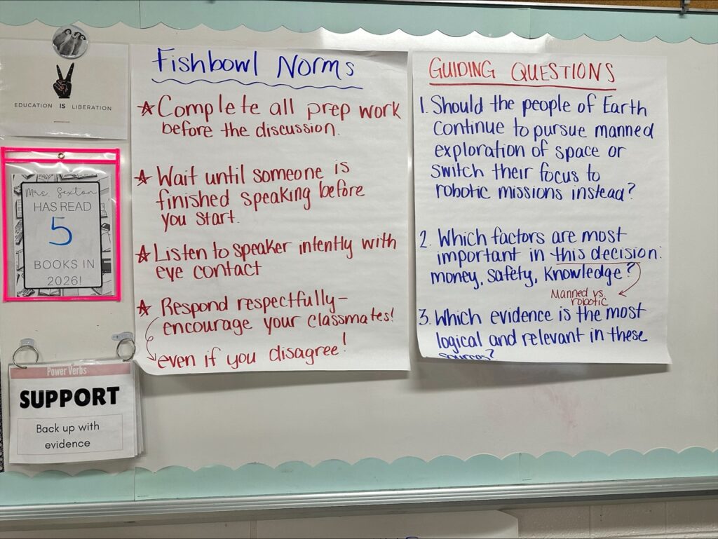 All discussion resources were intentionally developed after students provided input on expectations, norms, and evaluation criteria, ensuring strong student ownership and engagement. Additionally, the Socratic seminar structure and discussion-tracking strategies implemented were modeled during an in-person EPIC meeting last year.