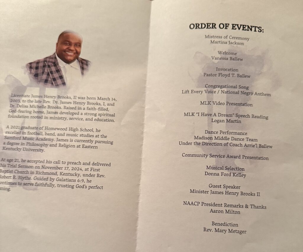 We are proud to teach at a high school that opens its doors to the entire community, not just our students. This afternoon, we were honored to host the NAACP Richmond–Madison County Branch as we reflected on the enduring legacy of Dr. Martin Luther King Jr. and his leadership in advancing equal opportunity and justice for all. Our keynote speaker, Minister James Henry Brooks II, inspired us with remarkable wisdom and passion—especially impressive at just 22 years old.