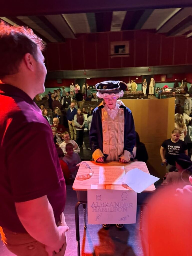 Those conversations helped students move from research into writing. Each student was then tasked with writing an original, first-person speech from the perspective of their historical figure, focusing on an important event in that person’s life or persuading the audience about an issue that would have mattered deeply to them. Many students revised their speeches multiple times—especially after practicing out loud or putting on parts of their costume and realizing what did (and didn’t) sound natural. Along the way, students were practicing research, critical thinking, writing, and public speaking while also learning how to use AI tools thoughtfully and responsibly. This project pushed students to think across content areas—history, literacy, technology, and performance—while giving them real ownership of their learning.